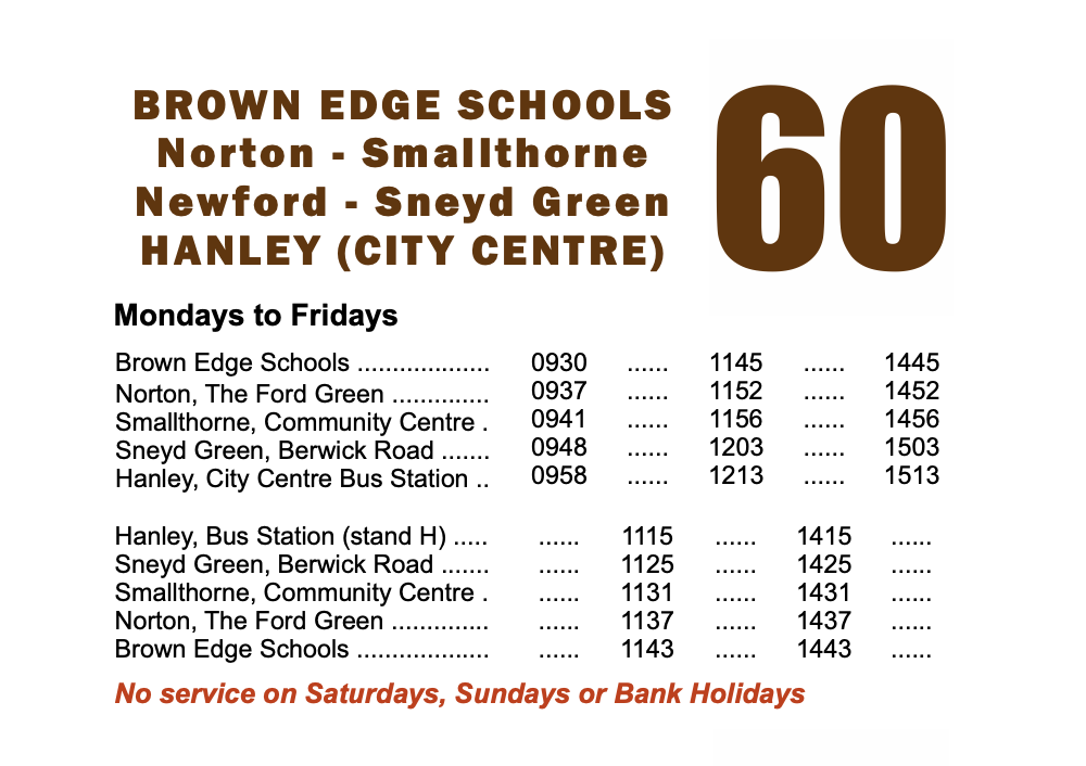 Hanley Bus Station – Pool Dole – Longton – Lightwood