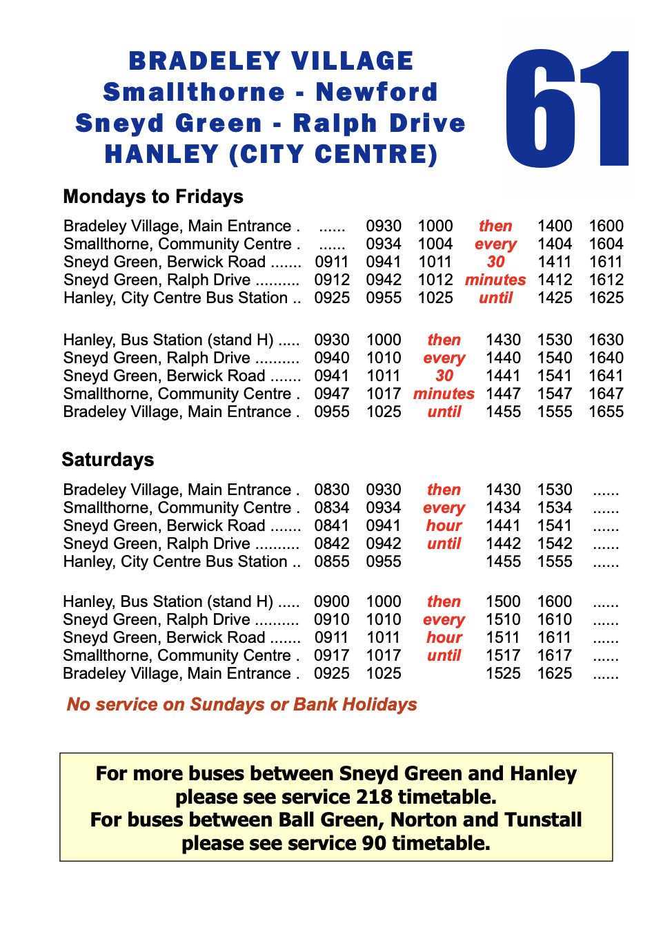 We now operate several bus services in the Stoke on Trent & Newcastle areas. We accept all Smart Tickets, Card Payments & Cash. To view a timetable, click on the route description below the route number.